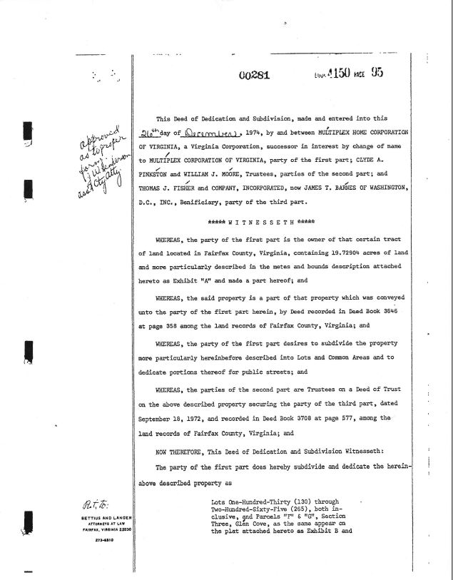 The original declaration, as filed with the Virginia State Corporation Commission in 1974, which contains the Covenants, Conditions, and Restrictions that define the Glen Cove Homeowners Association.